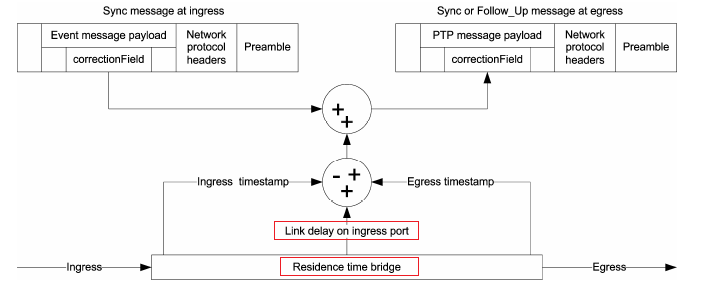 gPTP对策:Bridge设备必须具有测量驻留时间的能力,在转发报文的时候,需要将驻留时间累加在PTP报文的矫正域中(correctionField)。