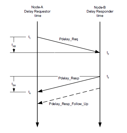- 节点B将t3放在报文Pdelay_Resp_Follow_Up中发给节点A