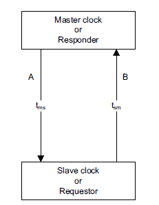 - 节点B将t2放在报文Pdelay_Resp中,并在t3时刻将该报文发给节点A