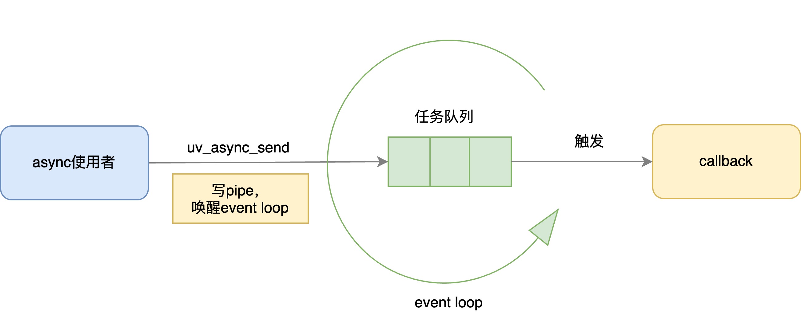uv_async_send唤醒event loop线程 event loop线程执行uv_async_t绑定的回调函数