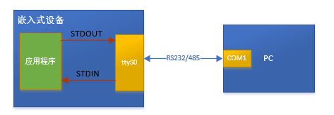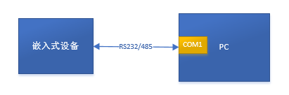 一些嵌入式设备,一般都会留有调试串口,经由RS232/485标准与PC的COM口相连,将打印输出在PC上显示,并可以接收PC端的输入,如下图所示: