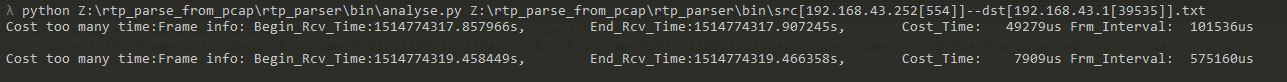 下图最后一行的Frm_Interval计算过程为:1514774319.466358s - 1514774318.891198s = 575160usrtp_parser/bin目录下的analyse.py脚本可以对解析出来的txt文件进行分析