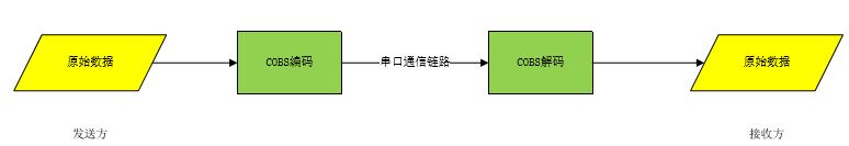 设备A(发送方)和设备B(接收方)通过串口通讯,如下图所示,使用COBS进行编解码主要是为了报文分割(解决粘包半包问题)。